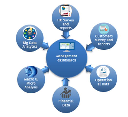 We provide self-refreshing dashboards for the top management at the corporate, verticals and the projects which are very helpful in day to day decision making of the clients. Our Dash boards combine the macro – picture, operational data and financial data for the benefits of the client decision making. Since we have a team of exCXOs, we understand the management needs while customizing the dashboards for our clients. Please see a sample dashboard in our report sections.